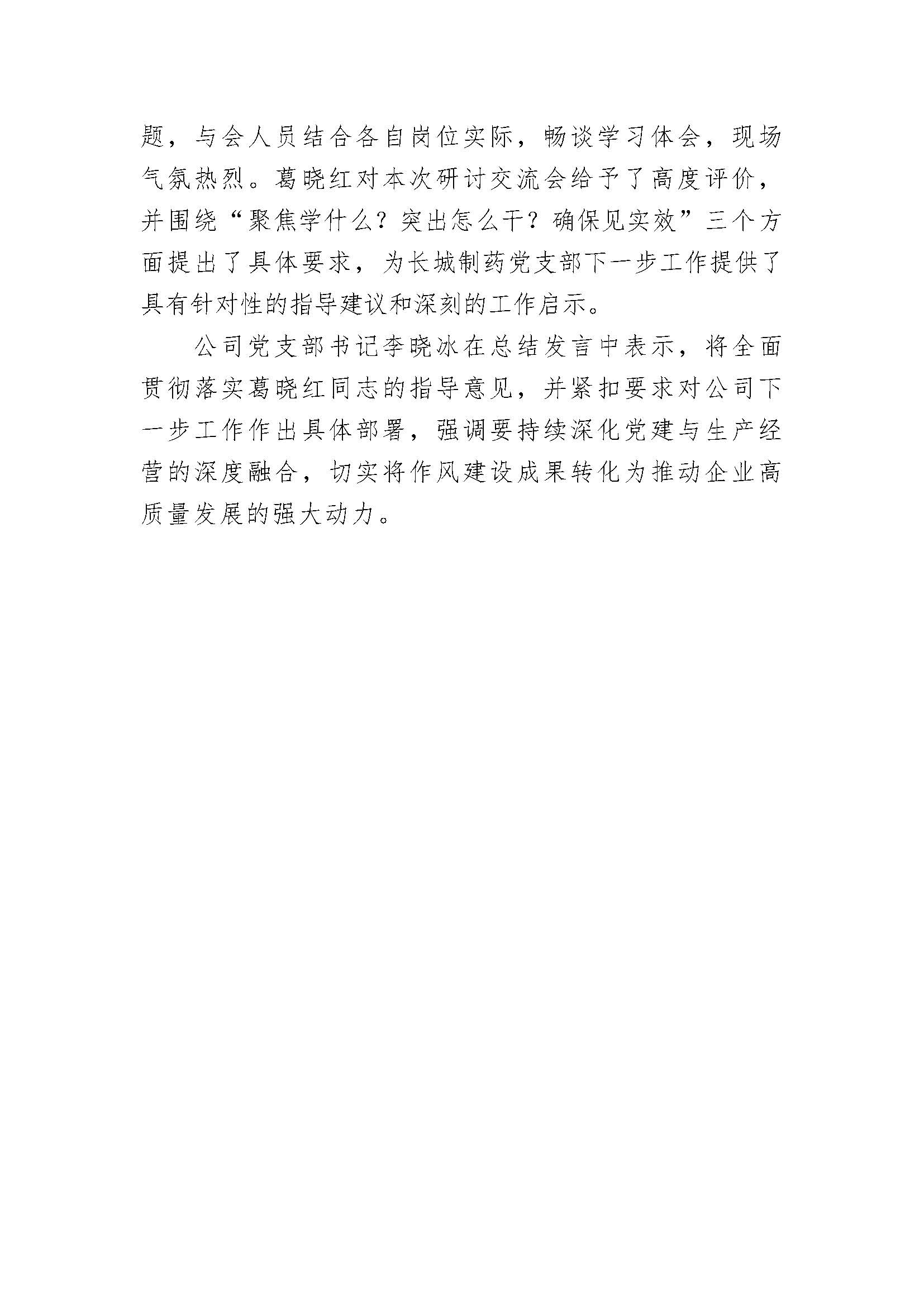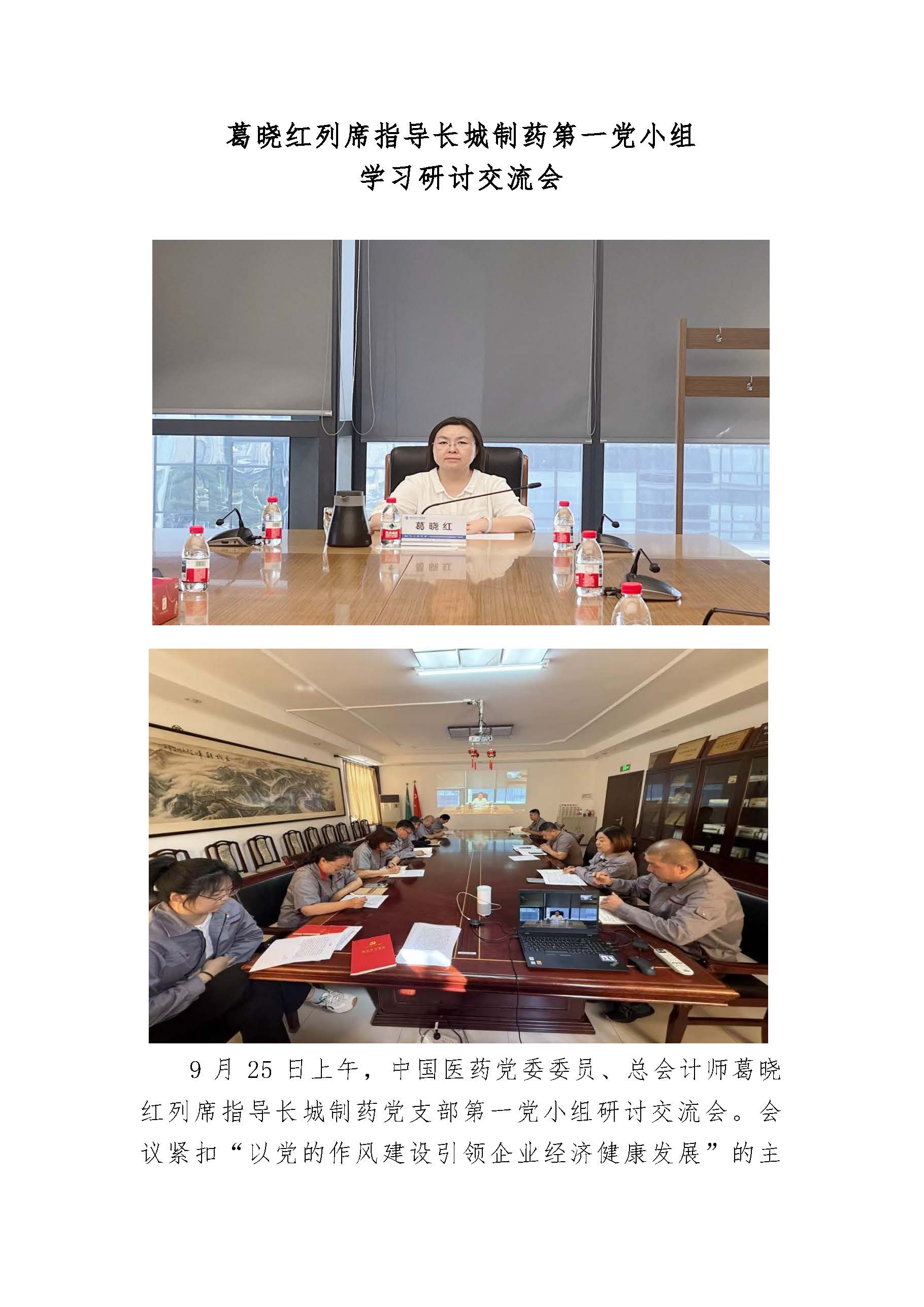 葛晓红列席指导长城制药第一党小组研讨交流会