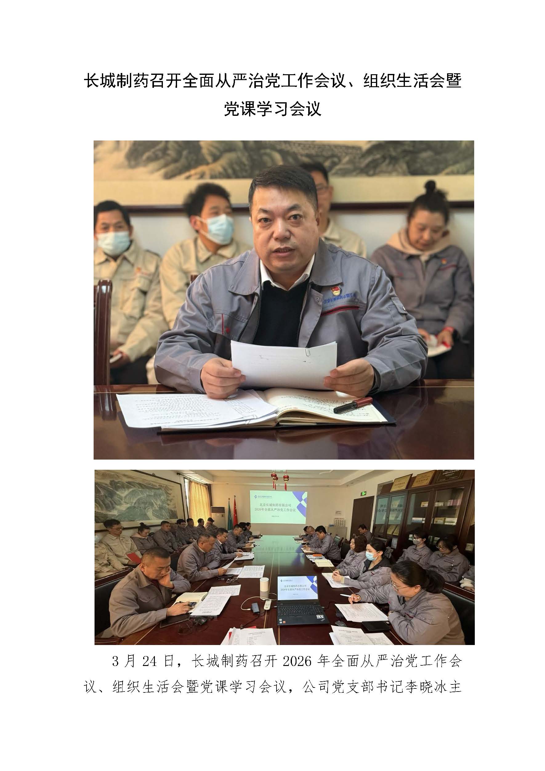 长城制药召开全面从严治党工作会议、组织生活会暨党课学习会议