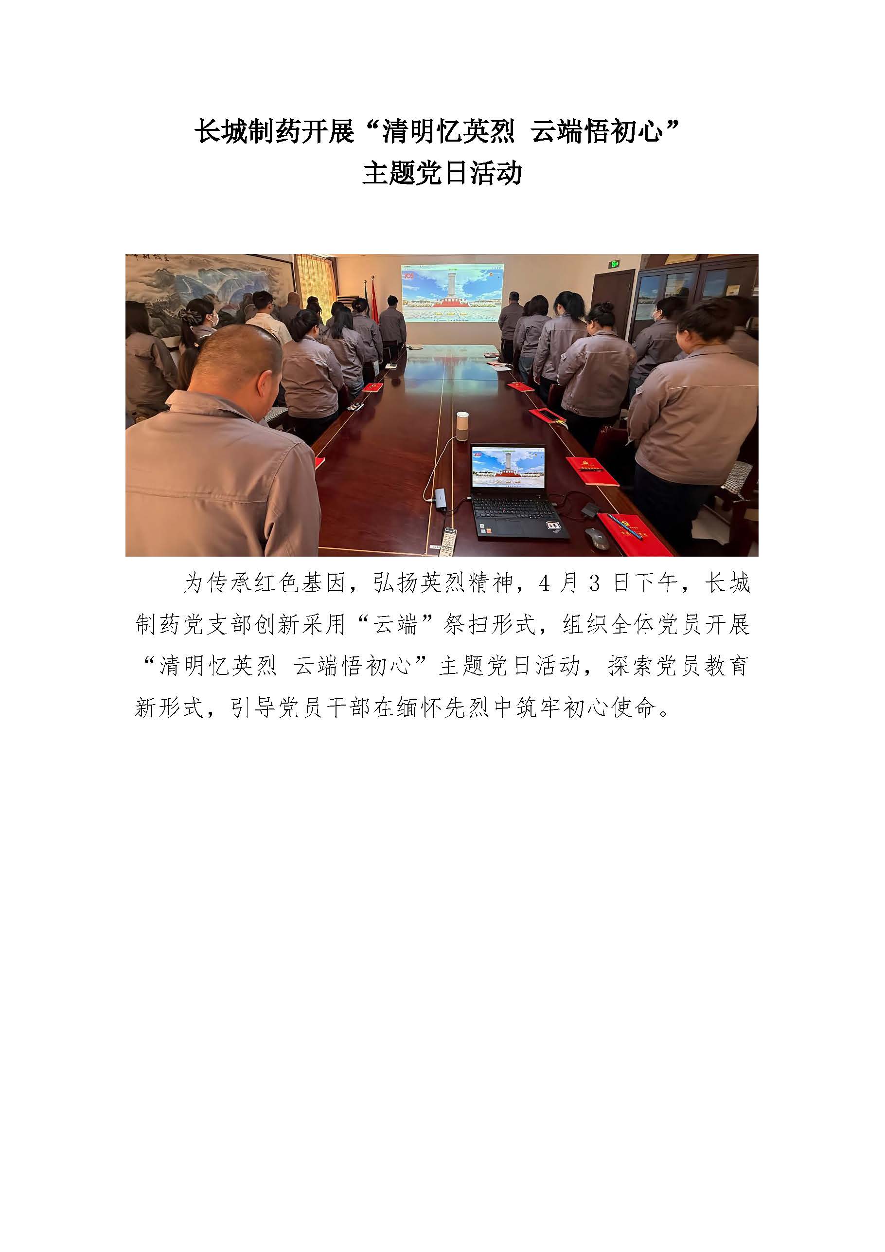 长城制药开展“清明忆英烈 云端悟初心” 主题党日活动