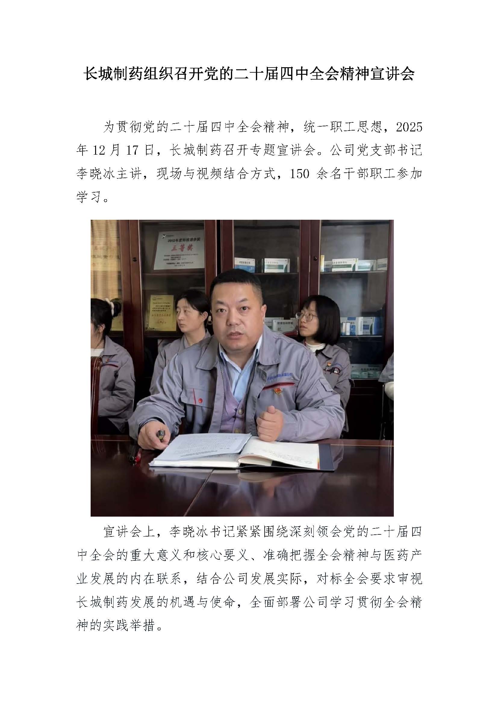长城制药组织召开党的二十届四中全会精神宣讲会