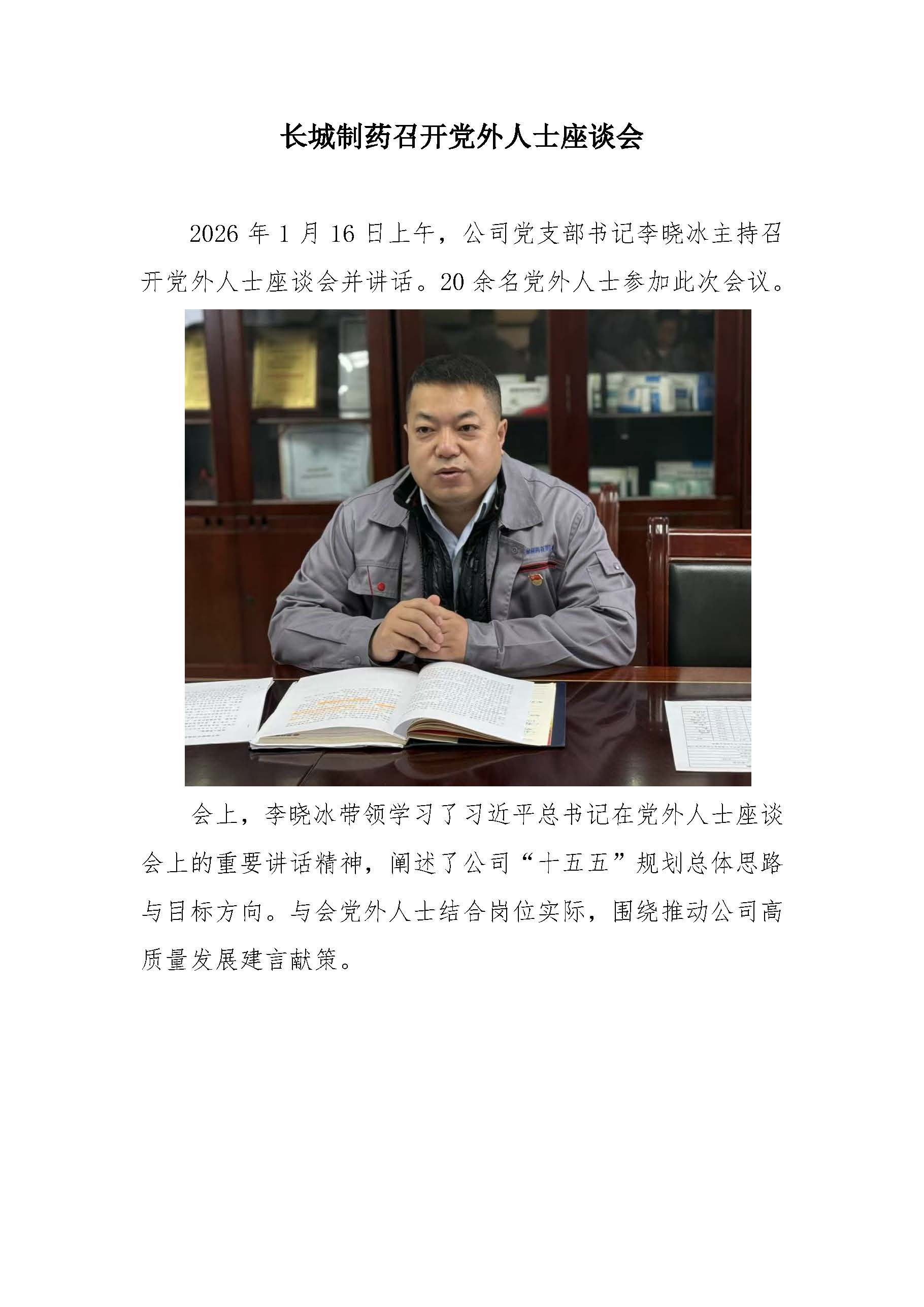北京长城制药有限公司-组织召开党外人士座谈会